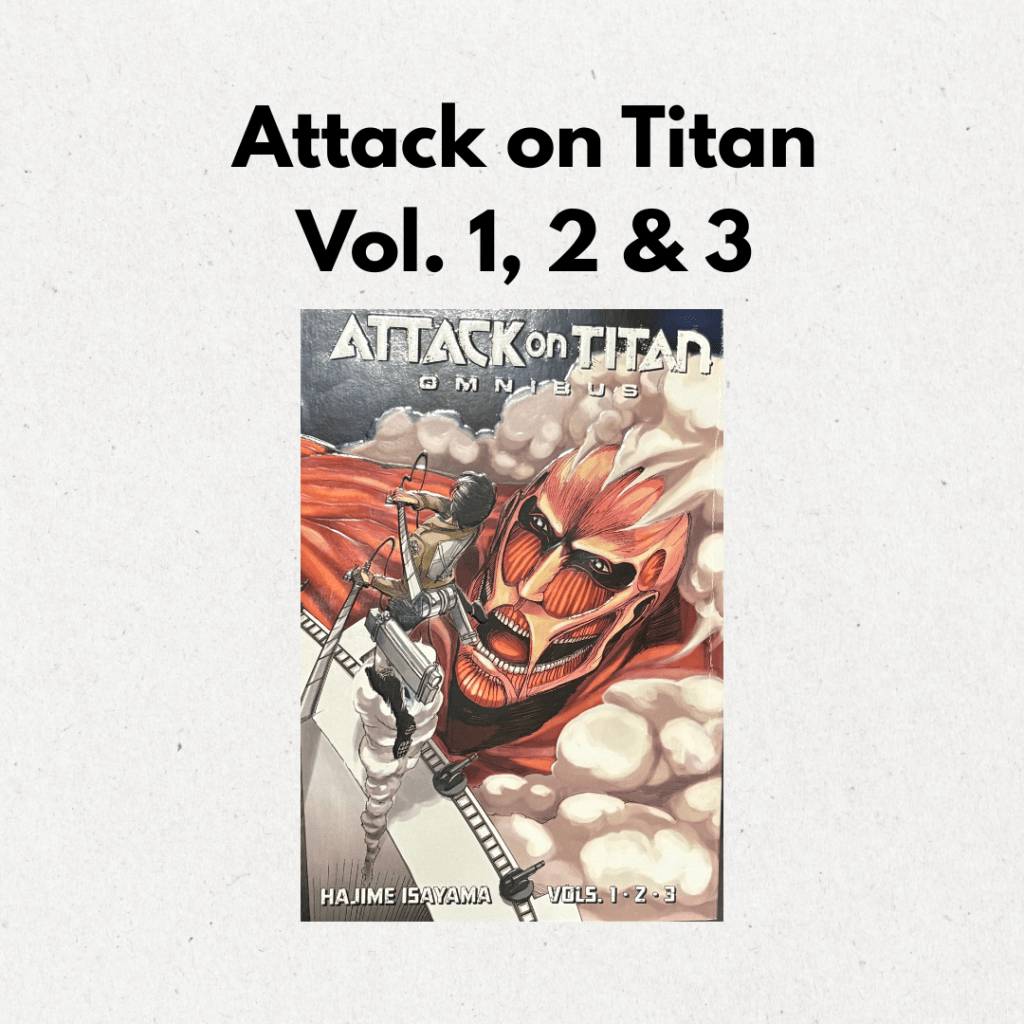 “Attack on Titan Omnibus: Vol. 1, 2 & 3” by Hajime Isayama is the first manga I’ve read without seeing the anime first. Not gonna lie, it did take me a little more time to work through the drawings because this is the first time I have experienced the story, but overall I have really enjoyed it.